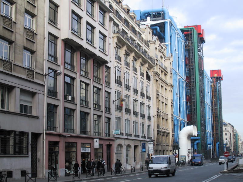 Le centre Beaubourg depuis la rue du Renard à Paris
